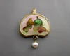Pears & Green Bottle, pendant. Gold, silver, enamel, pearl. 3.7 x 2.8 cm. NFS